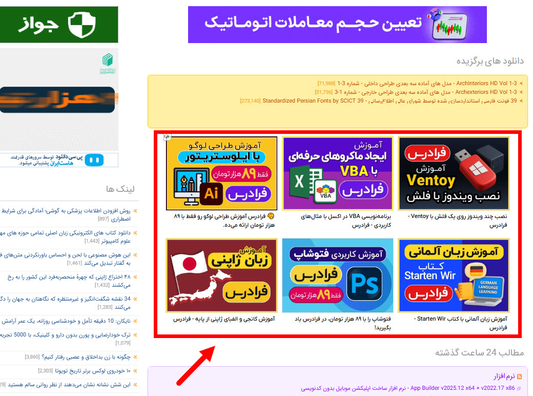 14 | blog.faradars.org | سایدبار چهارم | 1 | 18,000,000 | موجود | لینک نمونه | نمایش جایگاه |